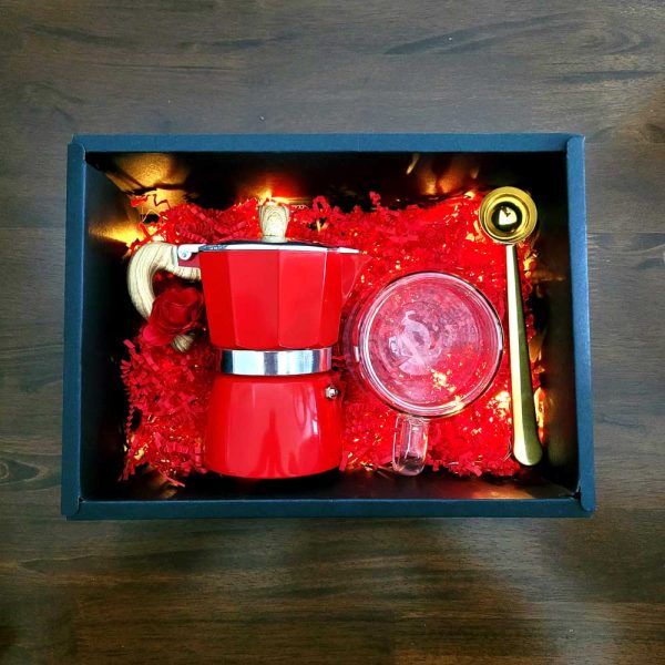 You Make Me Happy! es el box perfecto para quien te hace muy, pero muy feliz. Él o ella que se merece todo el cariño y amor del mundo quedará super feliz con este increíble presente cafetero que incluye una Moka Pot, una cuchara doble servicio y una taza de doble fondo.